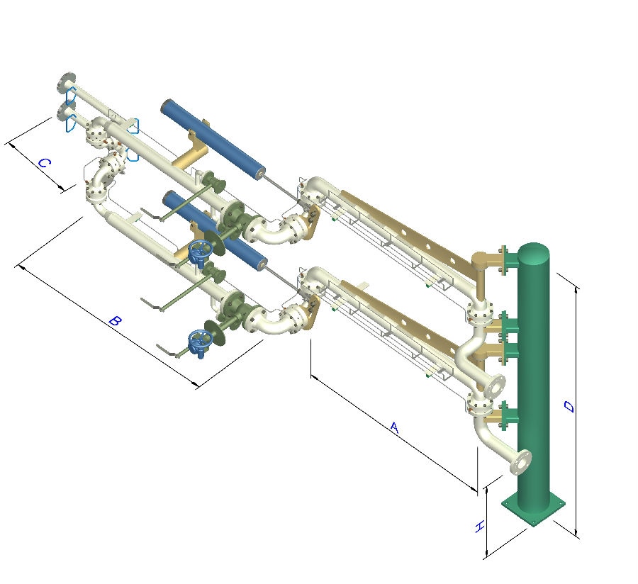 LNG鹤管结构特点:过流管道采用耐低温性能优良的不锈钢,配有多个低温阀门,以方便预冷和吹扫。配有氮气吹扫系统,可以有效保证旋转接头不会因为滚道内的水蒸气遇冷结冰而造成转动失灵。密封性能远优于OCIMF及欧盟标准的要求。