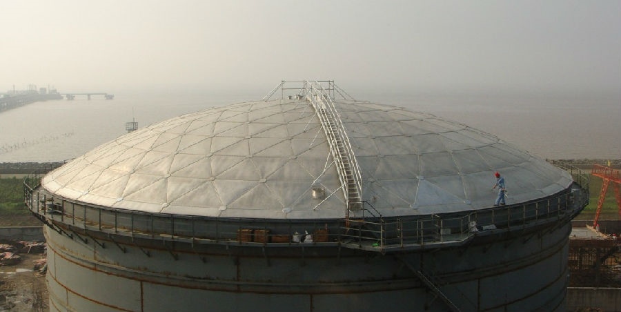 ◇采用铝合金网壳,结构重量大大减轻,使罐体及其基础承载相应减少,节省了费用。