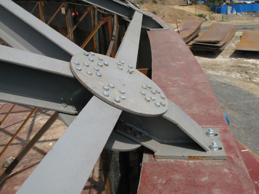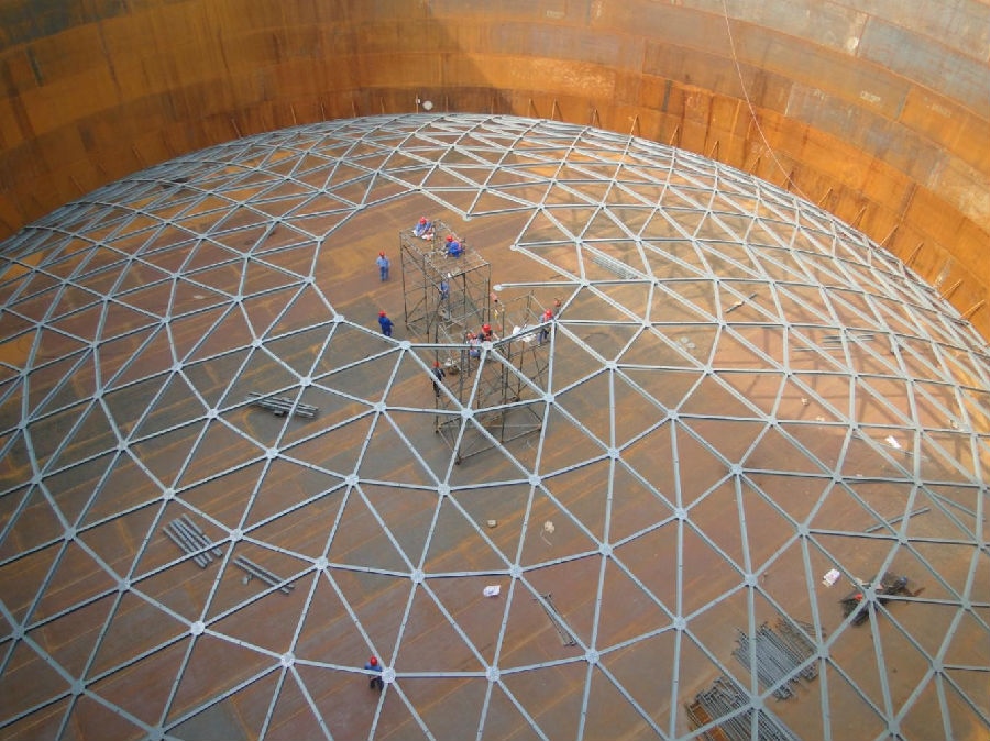 近十年来,中国的网壳结构获得了迅速发展,应用范围日益扩大。网壳结构具有刚度大、自重轻、造型美观、综合技术经济指标好的特点。是大跨度、大空间结构的主要结构形式之一。随着。随着石油量的快速增长,油罐的容量越来越大,肋式罐顶已不适应大型油罐的应用,采用网壳的结构更为合理、经济。我公司追踪国内外zui新科技动态与有关科研院所、大学联合利用有限元分析法开发了系列网壳产品,应用于储罐拱顶、气柜罩顶,其应用收到业主的赞誉。